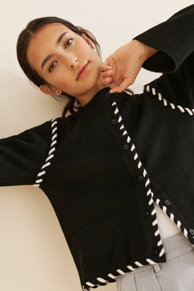 Cozy up in the Dahlia Cardigan, a short, ribbed knit that's perfect for effortless layering on transitional days. Wear it buttoned up as a top and pair it with white linen trousers and sandals for a resort-ready look.